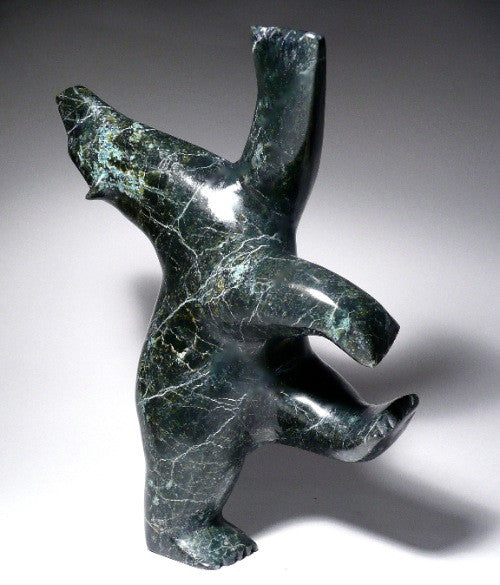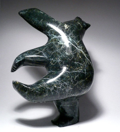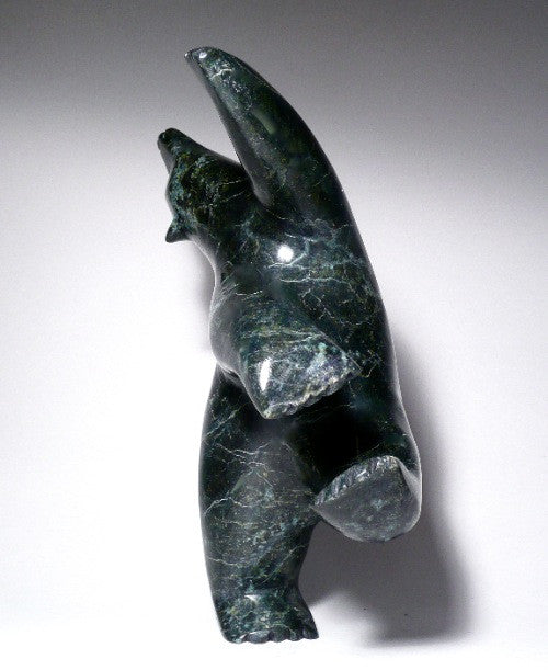 Noo Atsiaq was born in Iqaluit (Frobisher Bay), Nunavut and now lives and carves in Cape Dorset, the capital of Inuit art. His Parents are Alashua Atsiaq and Piulia Pudlalik Atsiaq. Noo has been carving since he was a young kid. He was initially taught by watching other carvers. His favorite subject is bears, dancing, diving and walking. Sculptures by Noo Atsiaq are well known and thought after in the Inuit art collectors world. He also occasionally carves people and caribou.